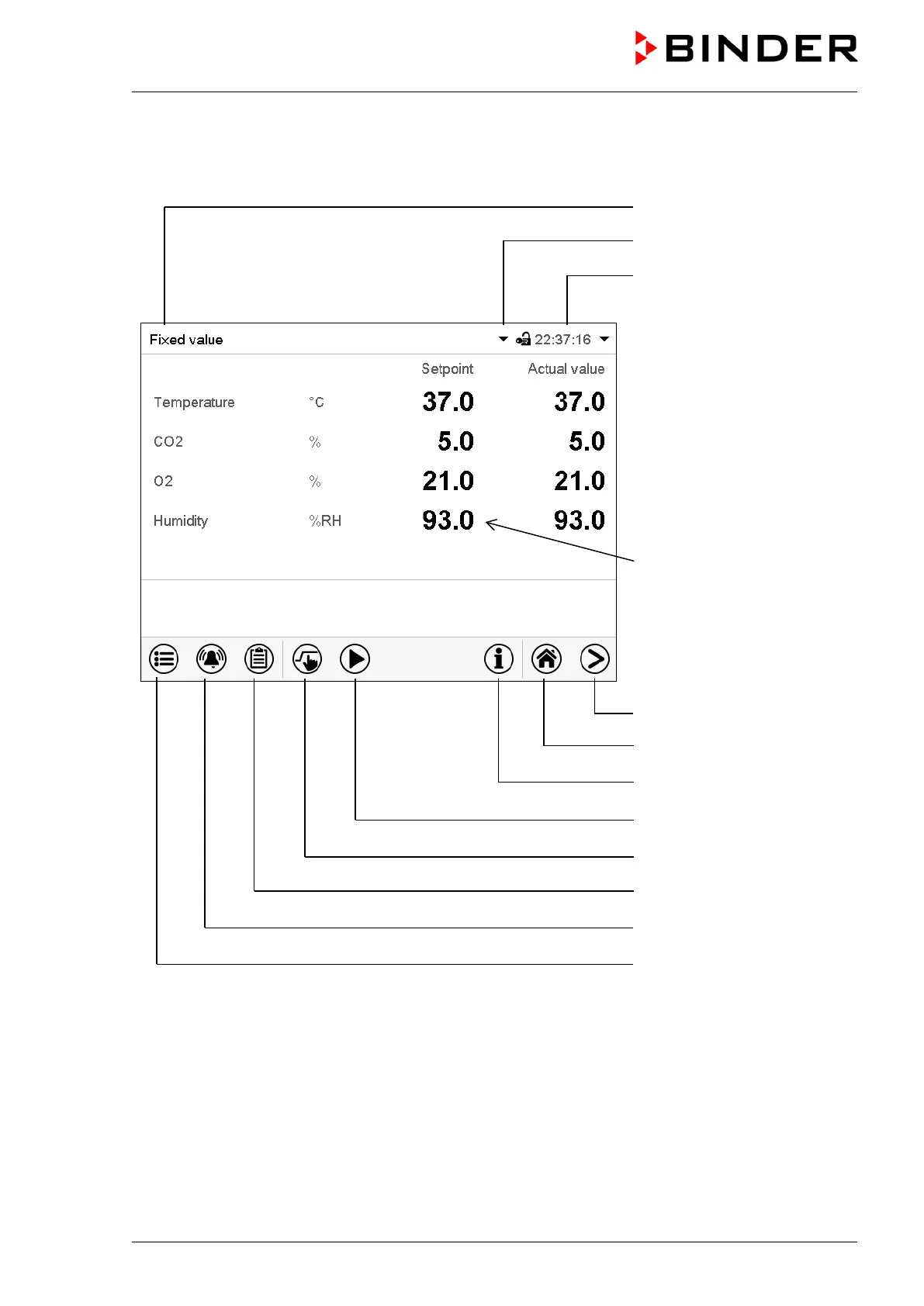 Figure 35: Operating functions of the MB2 controller in normal display (sample values, CBF / CBF-UL with