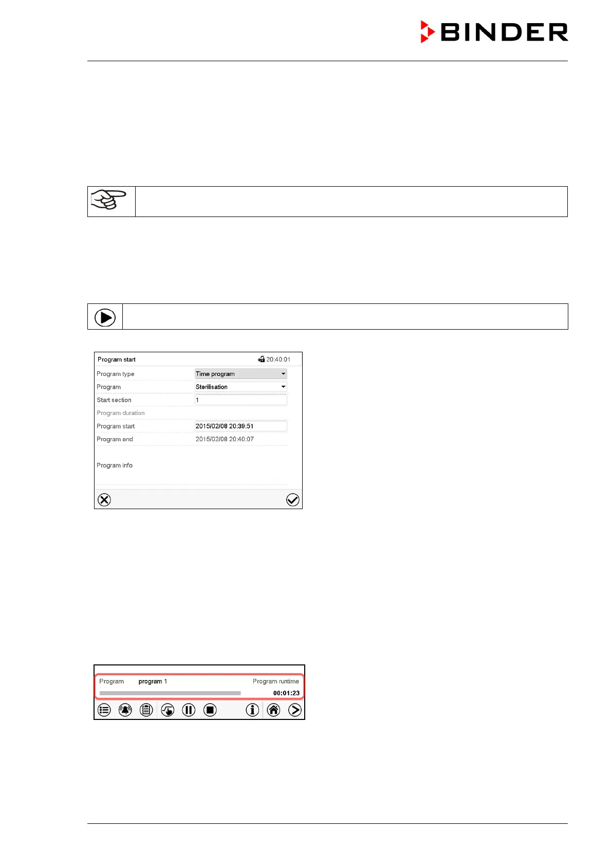 In Normal display press the Program start icon to access the “Program start” menu.
