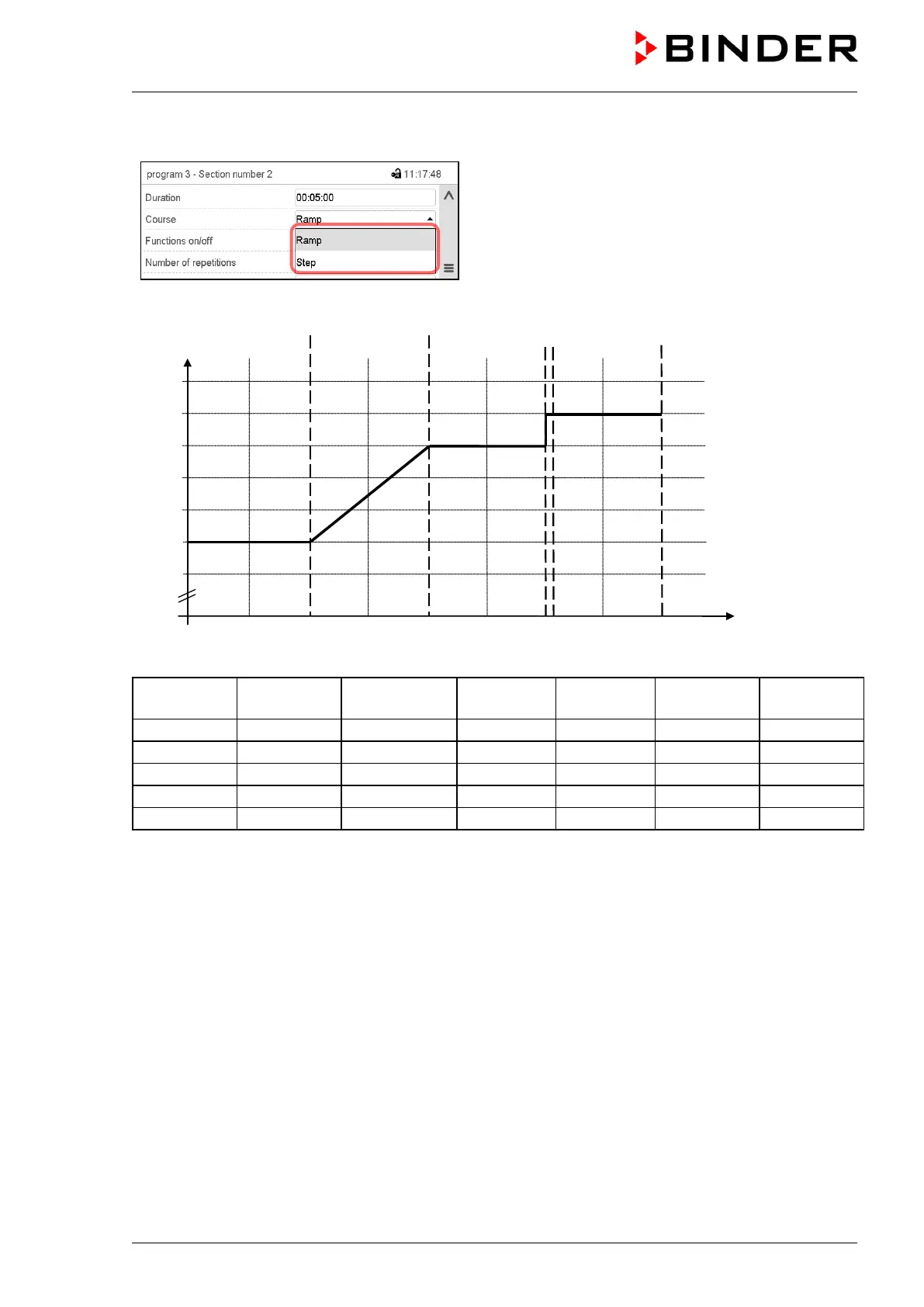 “Ramp” and “Step” mode example (representation of a temperature course)