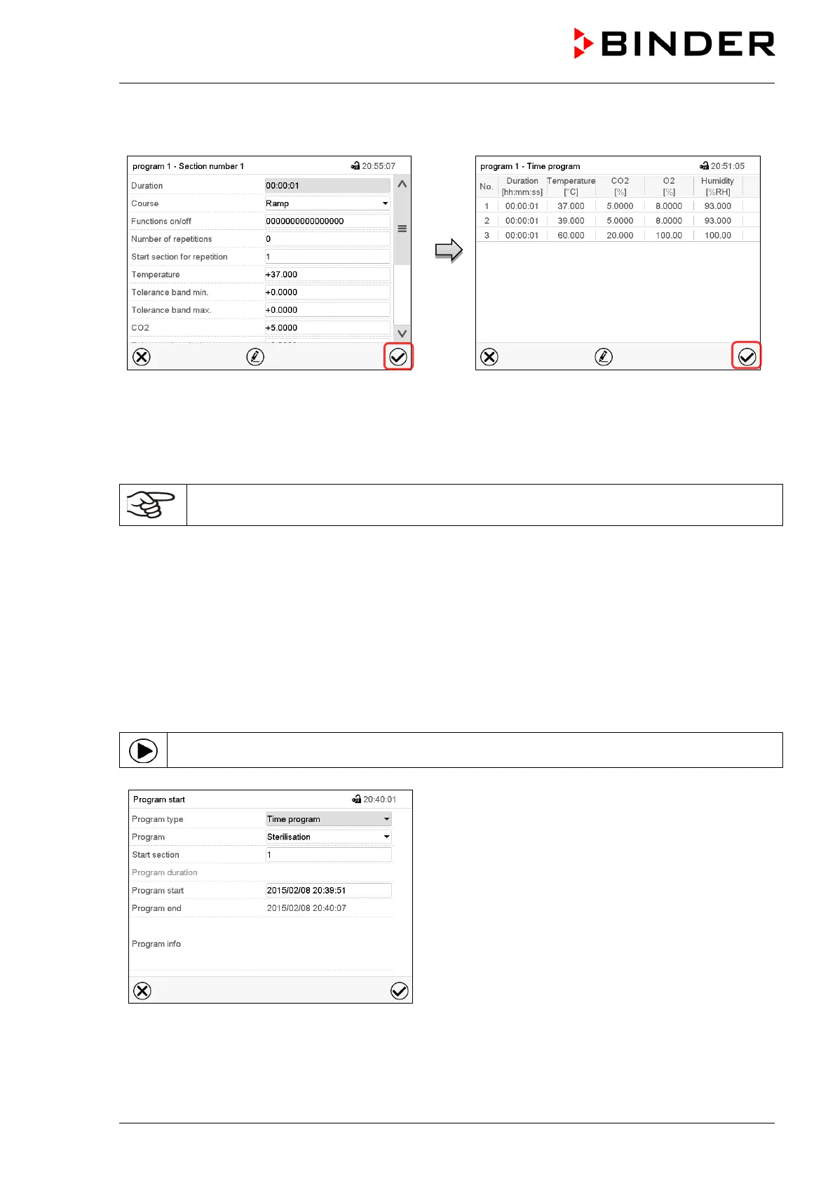 To save the programming it is absolutely required to press the Confirm icon. Otherwise all