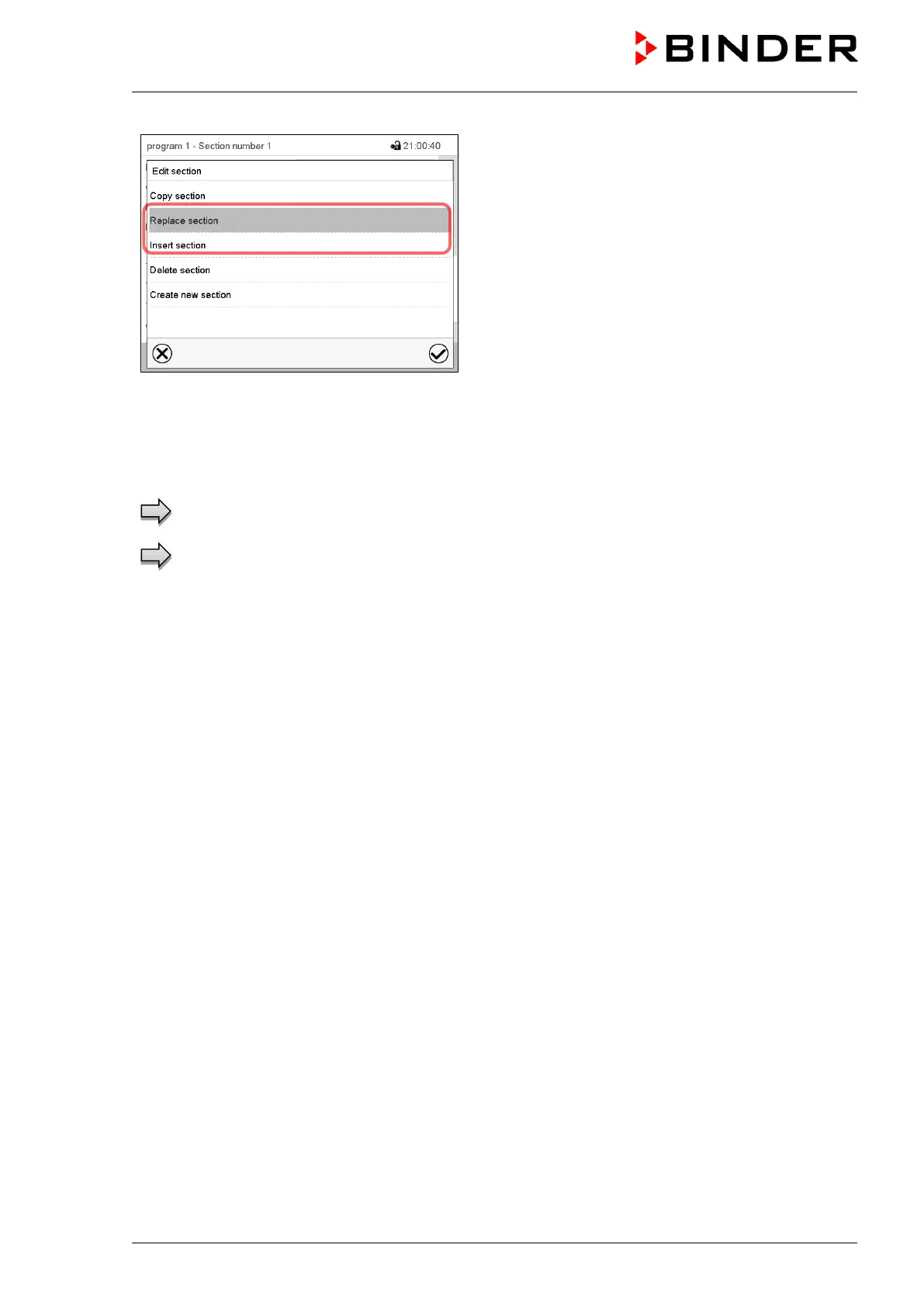 Press the Confirm icon.