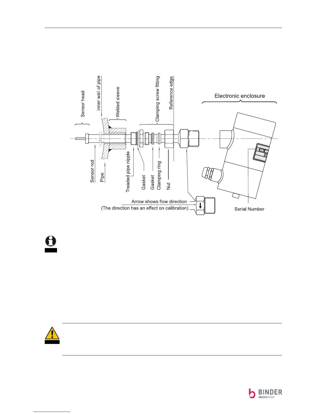 ■ The sensor head must be located in the centre of the pipe. To position the sensor head, proceed by