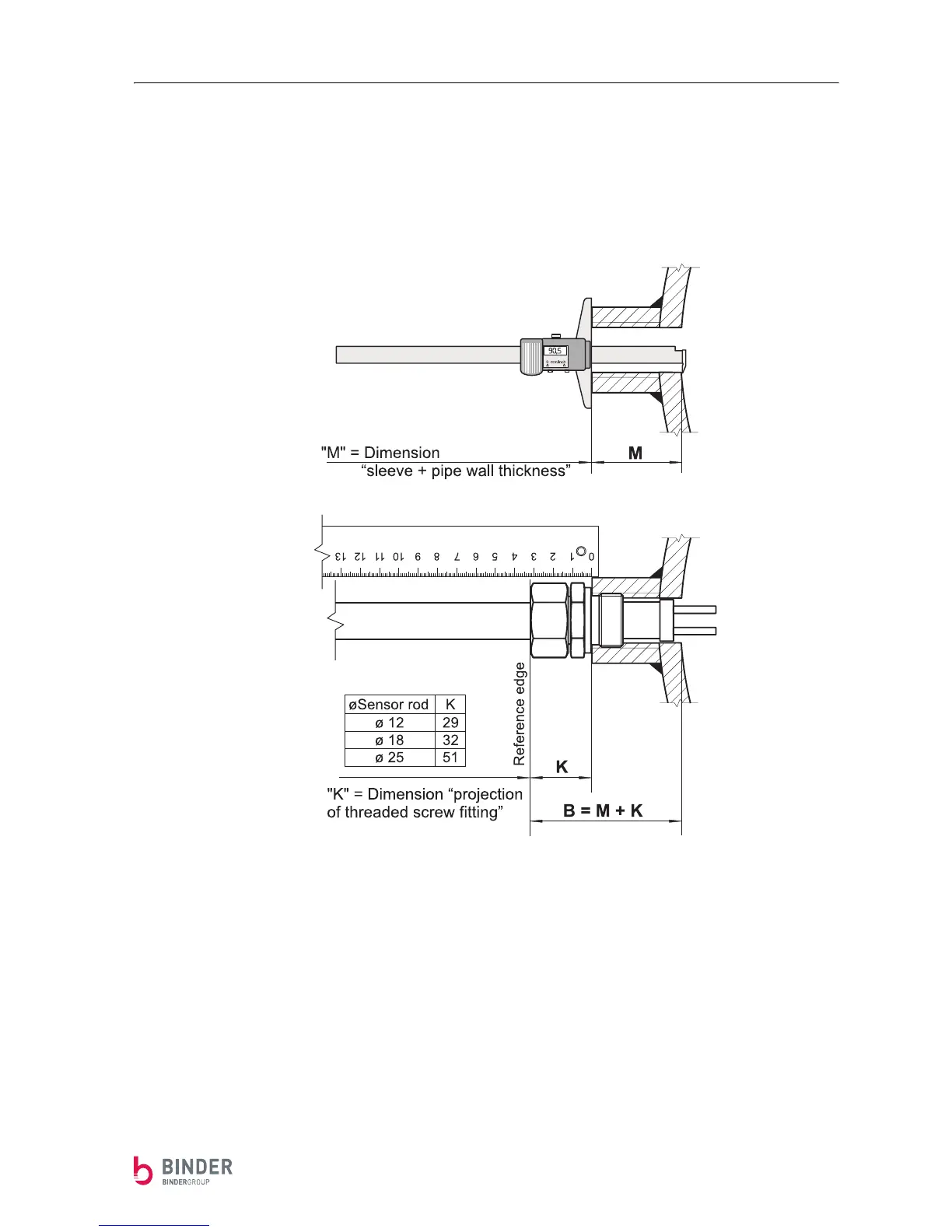 Measure dimension "K" = reference edge up to sleeve (see on the left of above diagram).