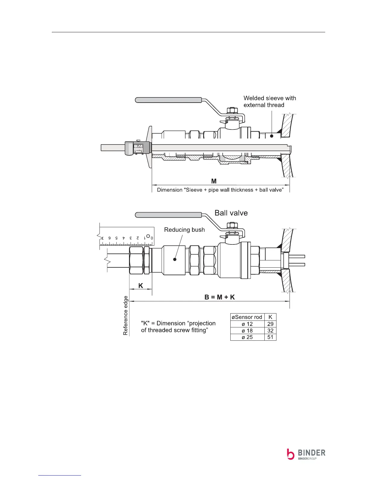 Measure dimension "K" = reference edge up to reducing bush (see on the left of above diagram).