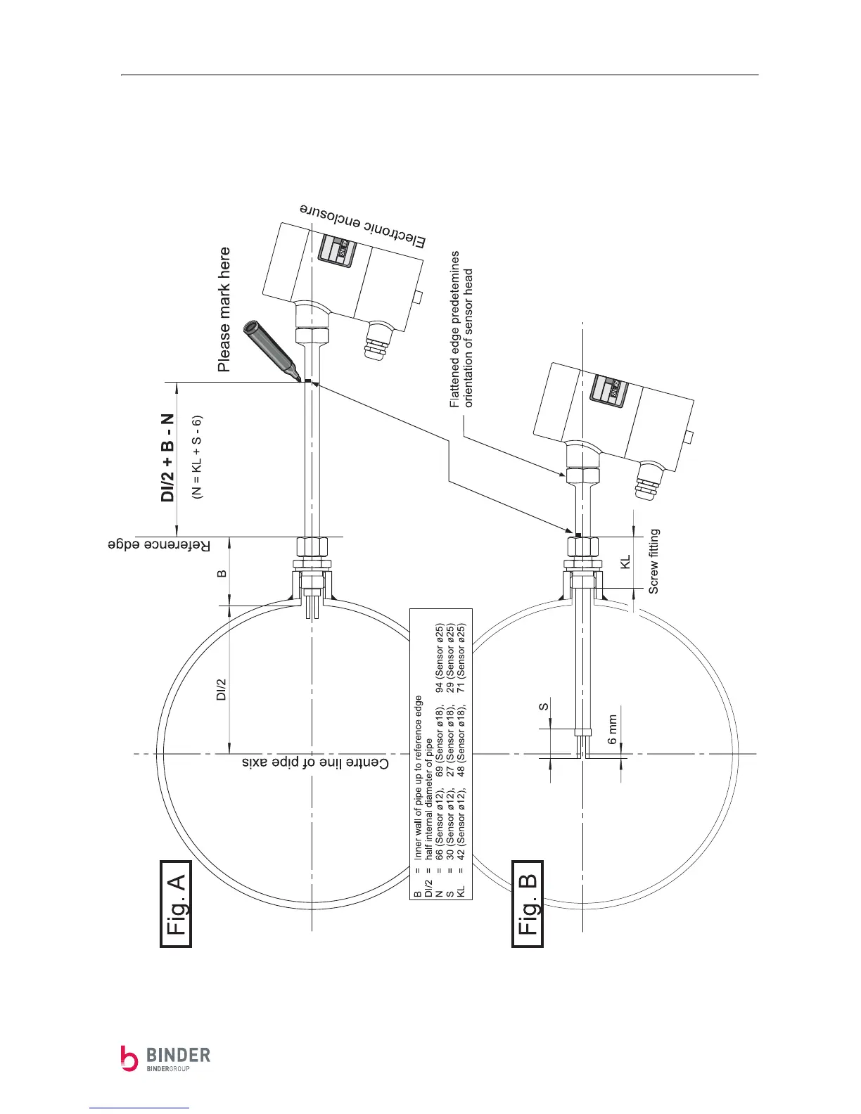 Binder COMBIMASS compact - Diagram: Positioning the Sensor Rod