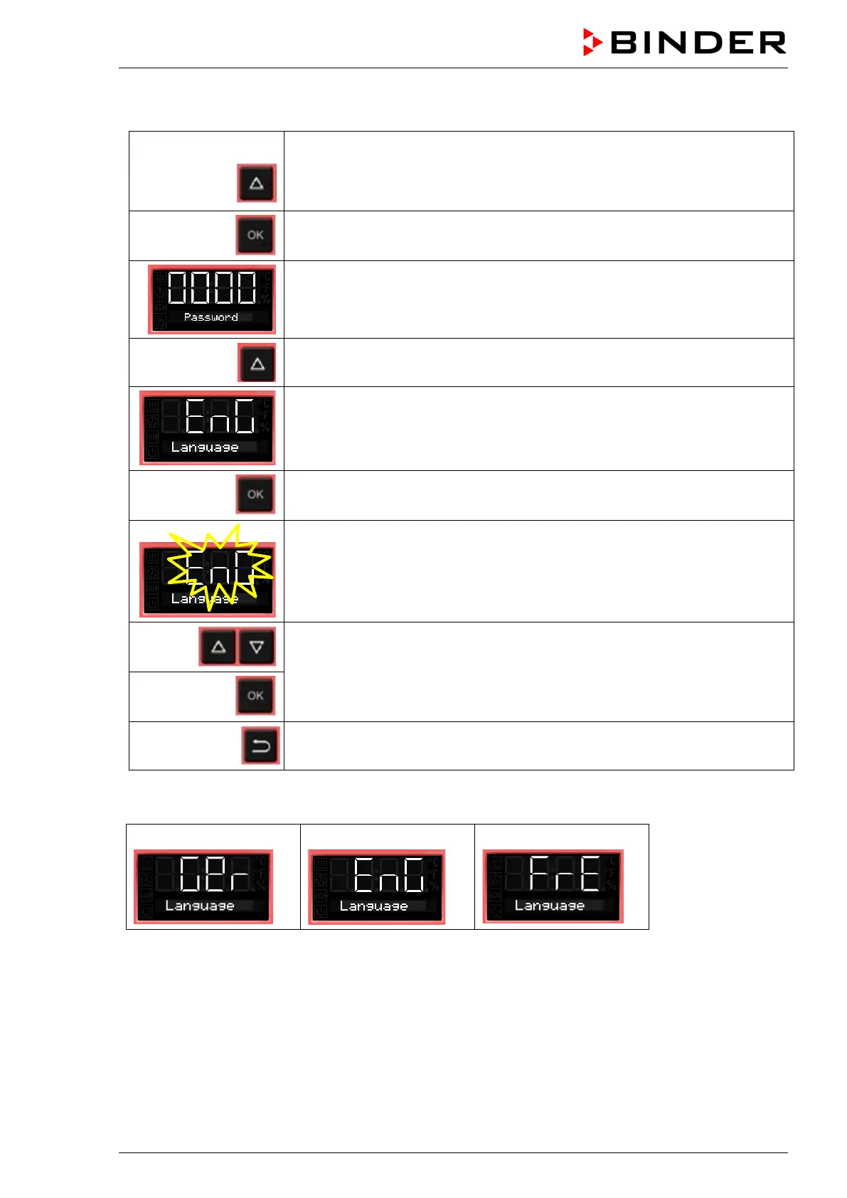 with the arrow-up button to the language setting menu.