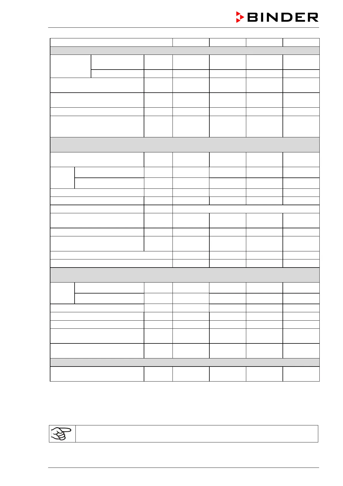determined in accordance to BINDER Factory Standard Part 2:2015 and DIN 12880:2007.