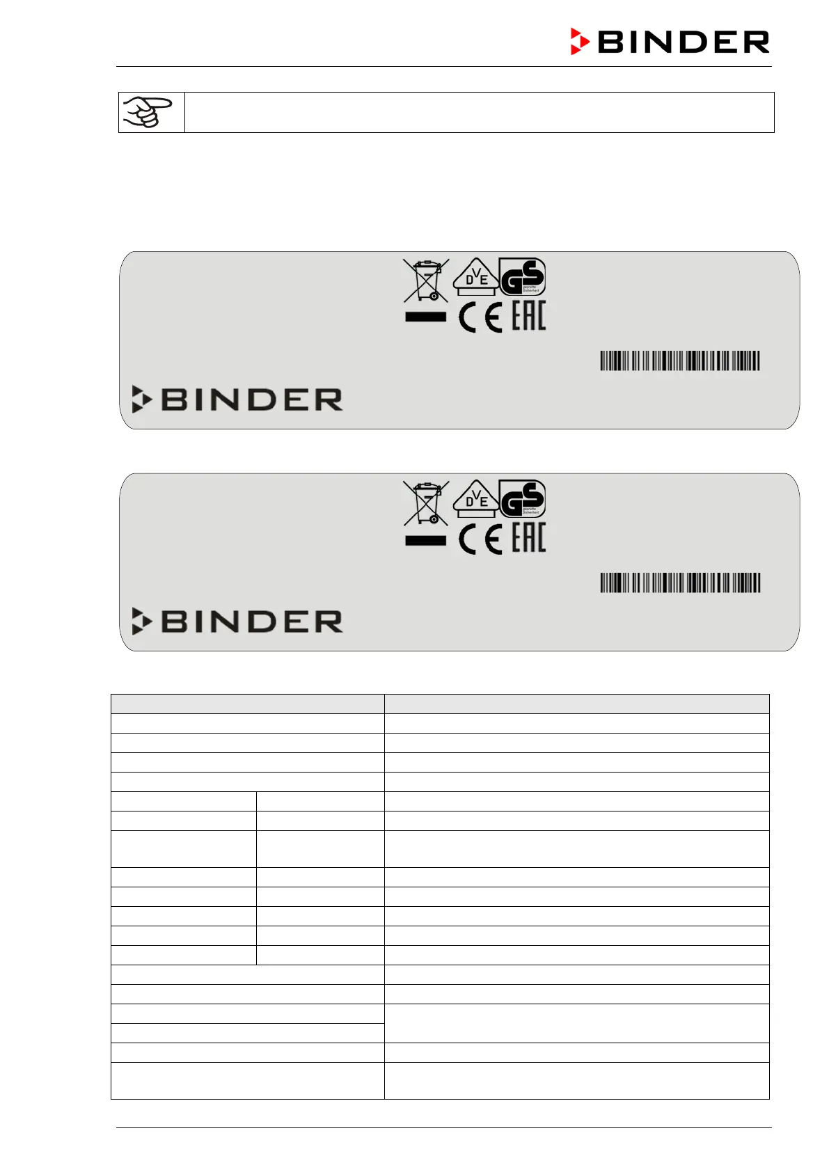 Replace safety labels that are no longer legible. Contact BINDER Service for these replacements.