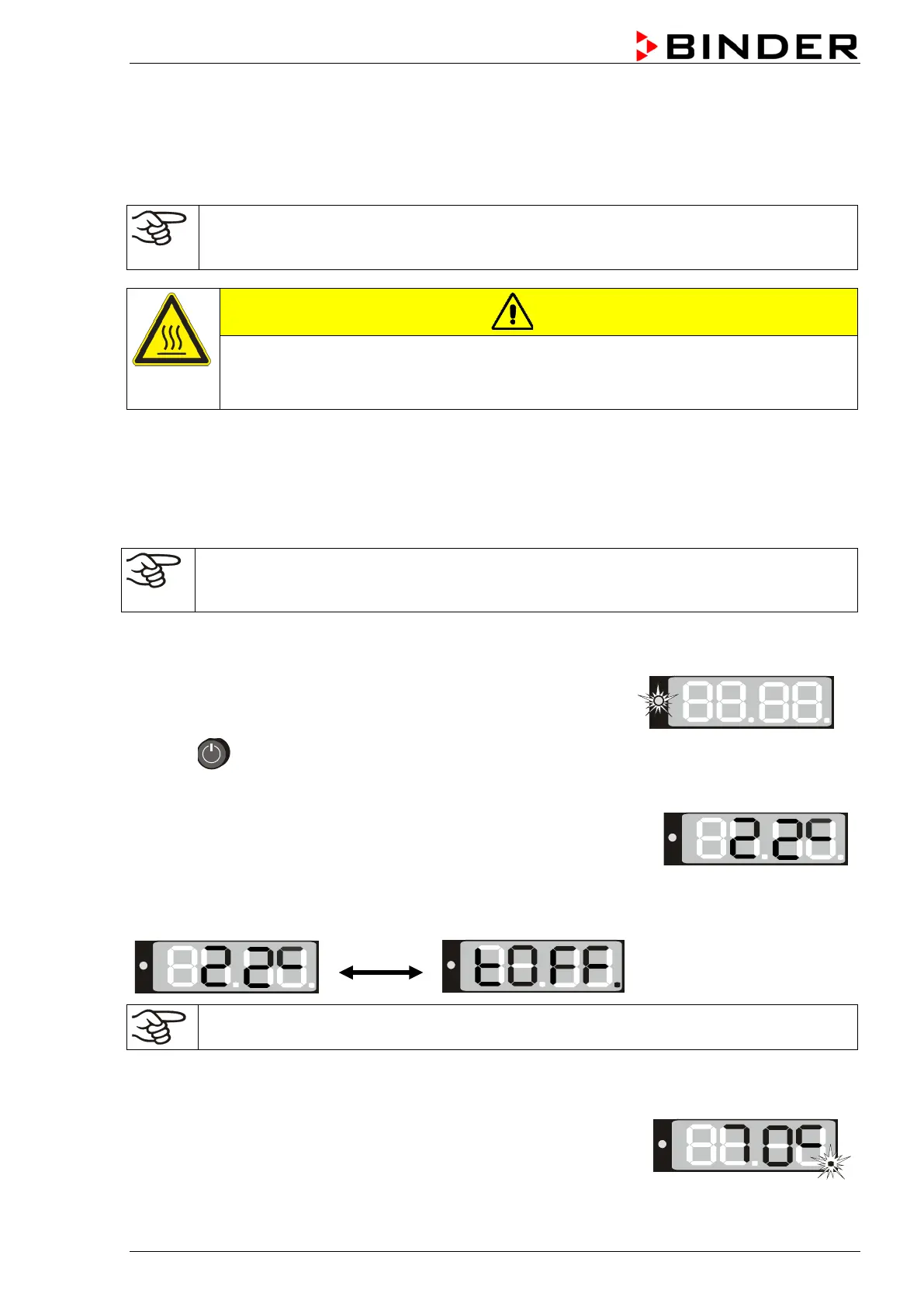 (chap. 6.3), the chamber is inactive (no heating). The display alternately shows the actual temperature