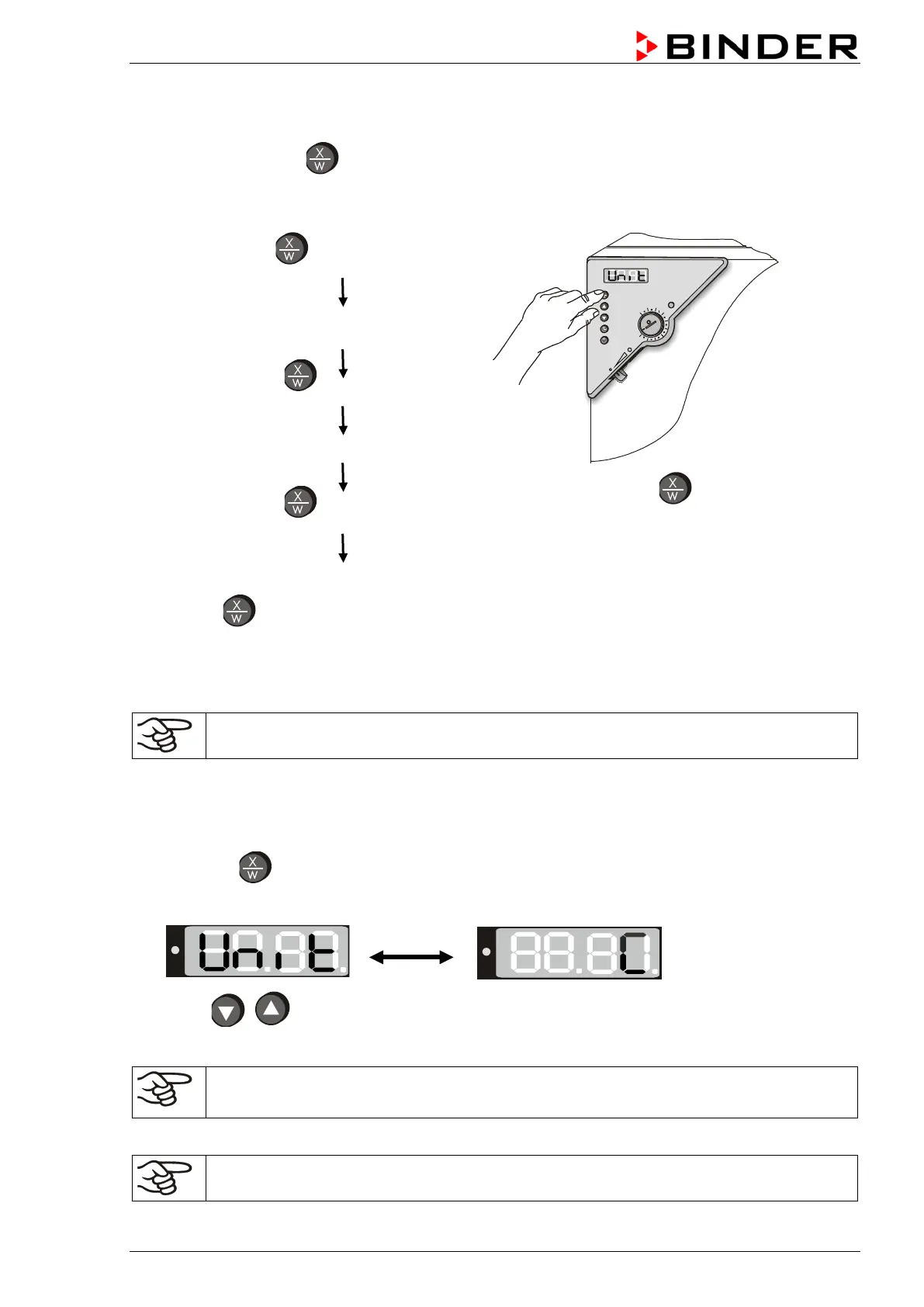 The display alternately shows “unit” and the actual setting of the temperature unit:
