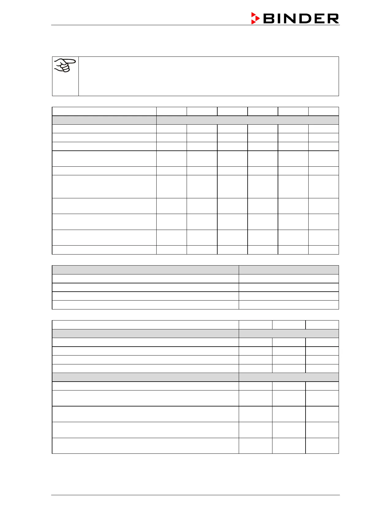 For information on components not listed here, please contact BINDER Service.