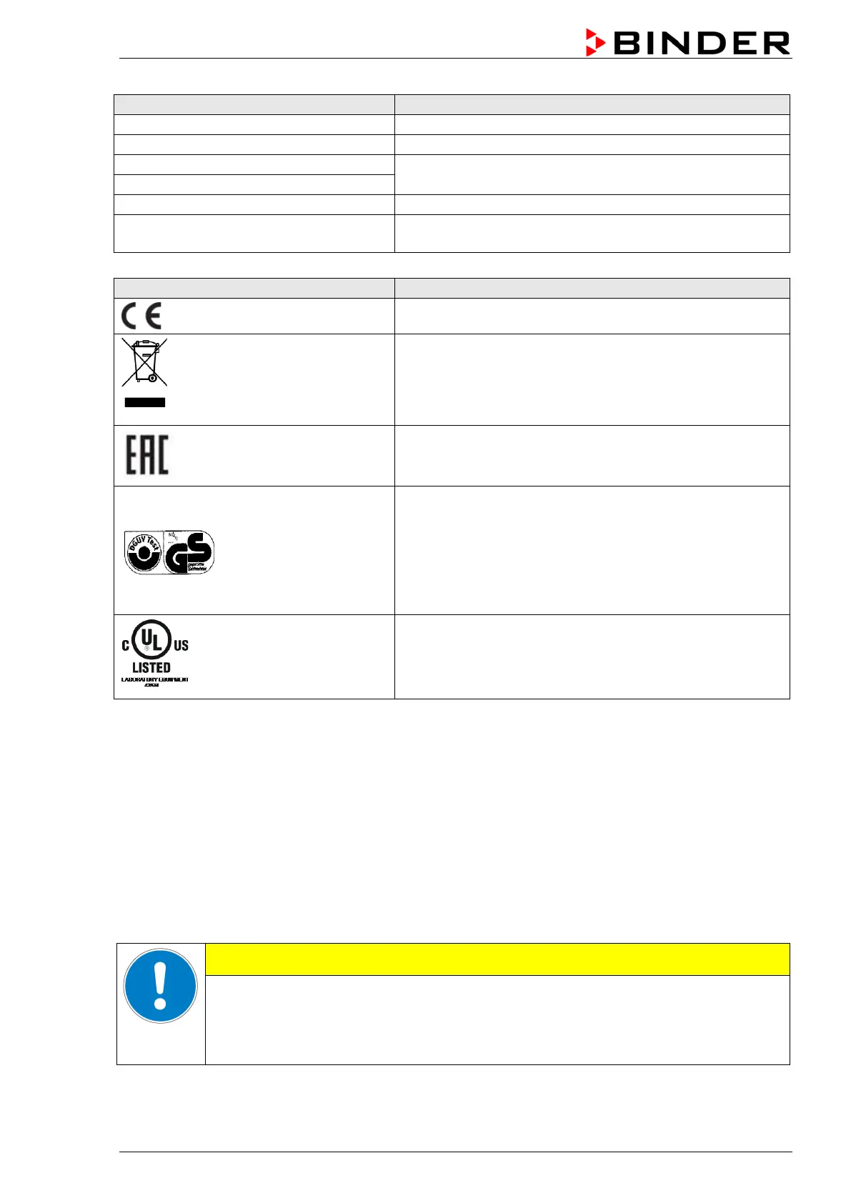 To operate the chamber, use only original BINDER accessories or accessories from third-party suppliers