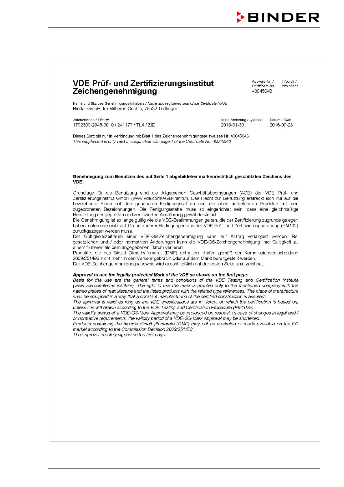 Other manuals for Binder FED 115