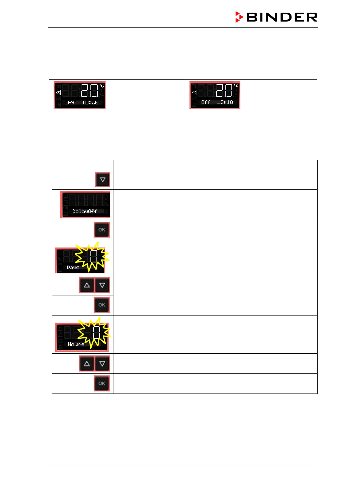 with the arrow-down button to the Timer function “Delayed Off” menu