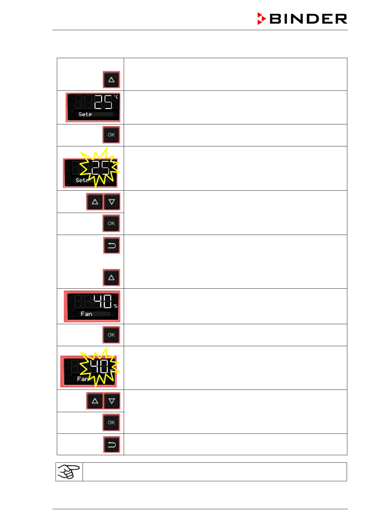 Adjust the fan speed in steps of 10 % with arrow buttons