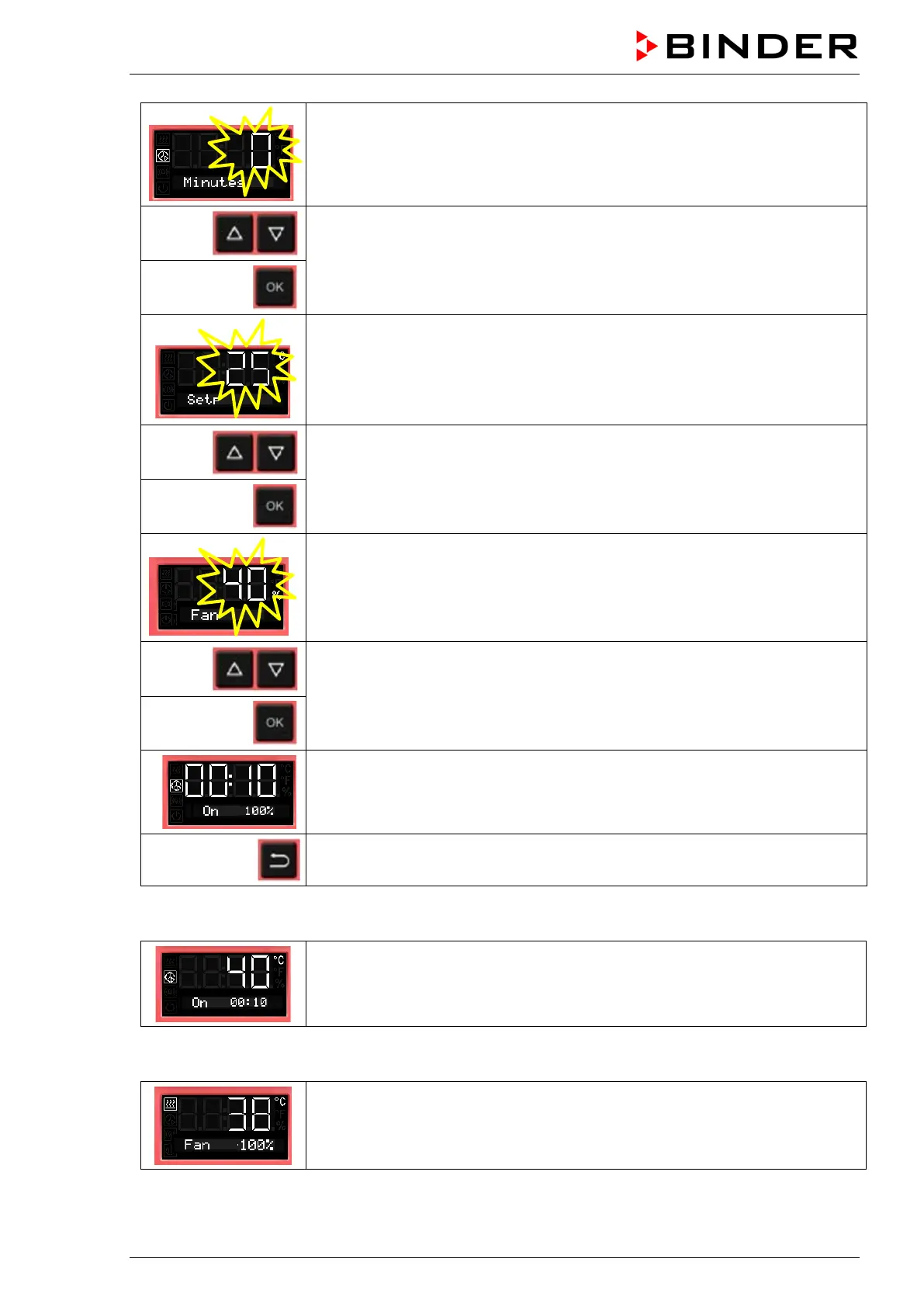 confirm with OK and go on to enter the fan speed set-point valid for the time af-