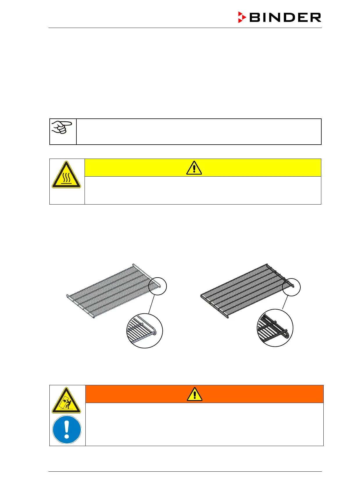 Optional heavy load rack: The lateral brackets must be below the rack surface when inserting the rack.