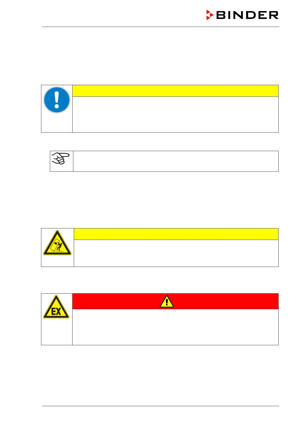Do not install or operate the drying and heating oven FED in potentially explosive areas.