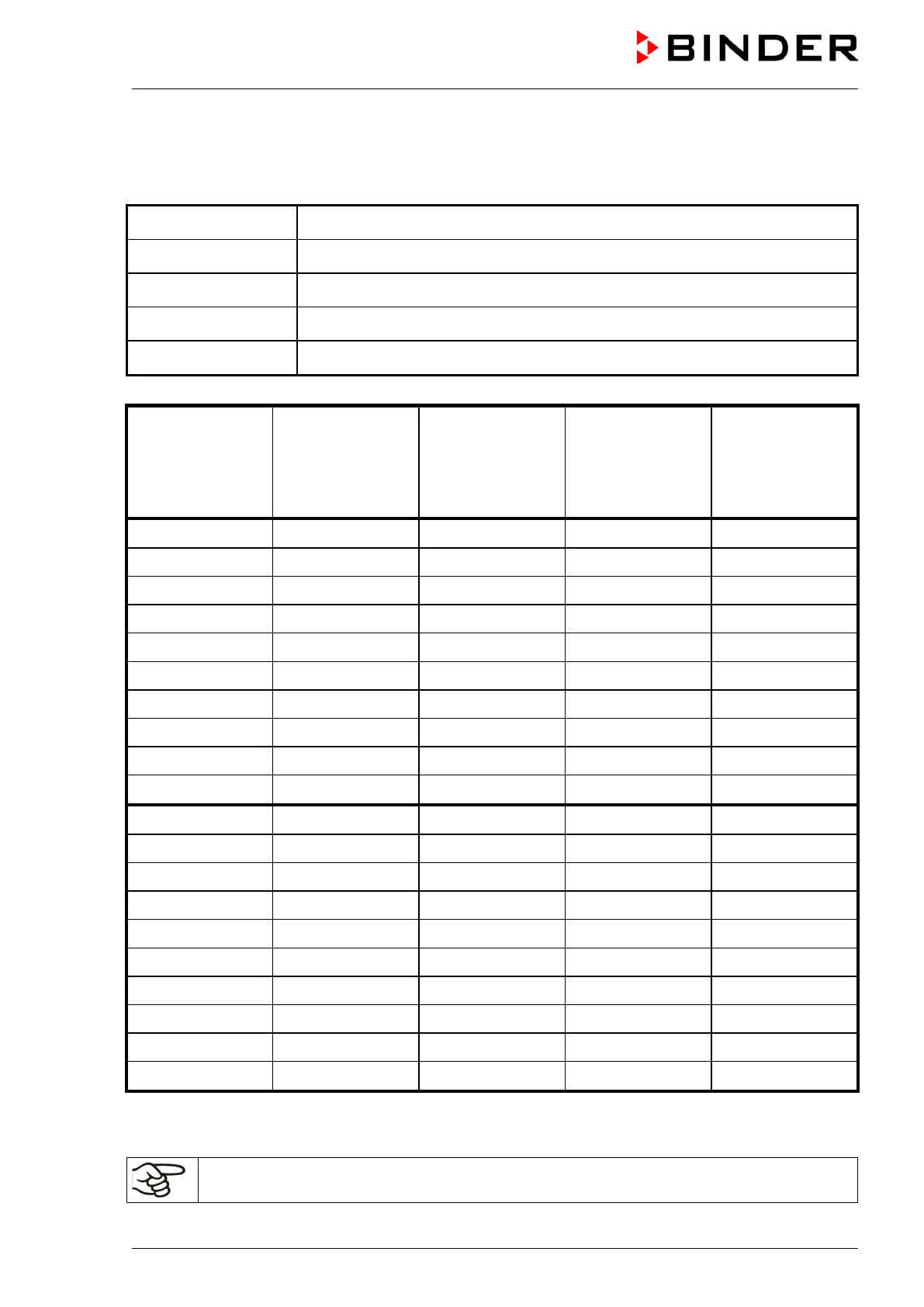 Binder FP 720 - Program Table Template