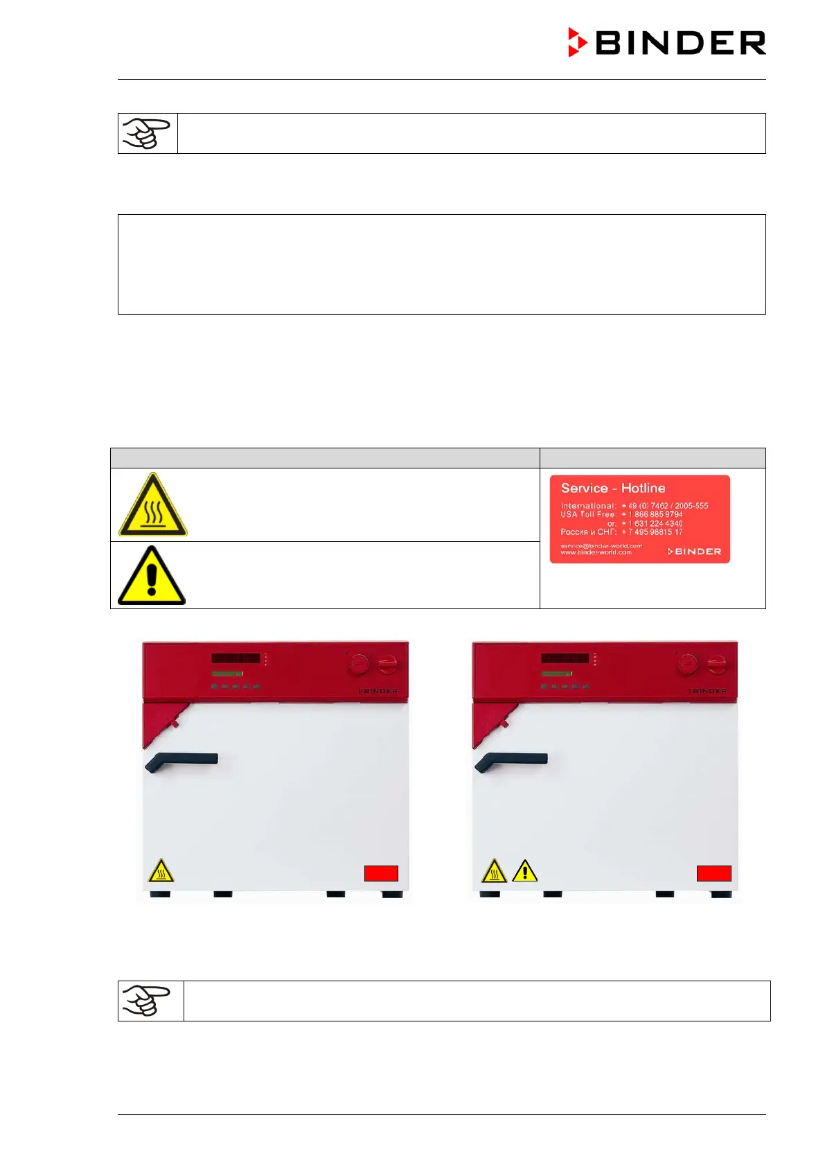 Replace safety labels that are no longer legible. Contact BINDER Service.