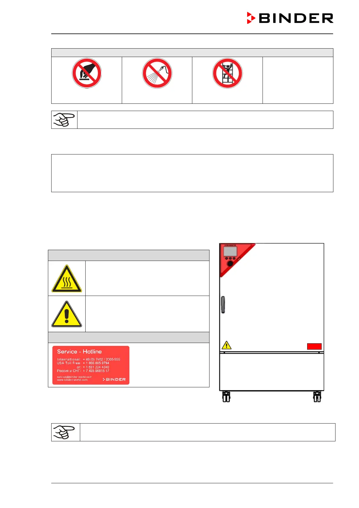 Replace safety labels that are no longer legible. Contact BINDER Service for these replacements.