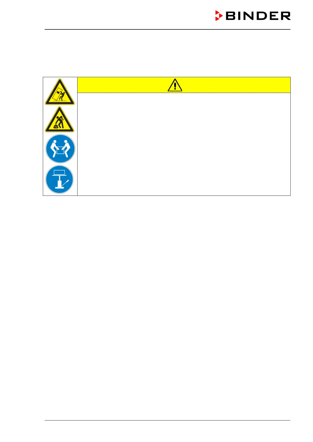 Lift KB 53 / 115 with the aid of four people in the area of all 4 chamber feet.