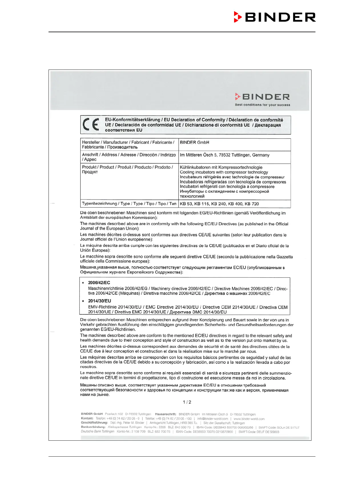 Binder KB 720 (E6) - 24 Certificates and Declarations of Conformity; EU Declaration of Conformity
