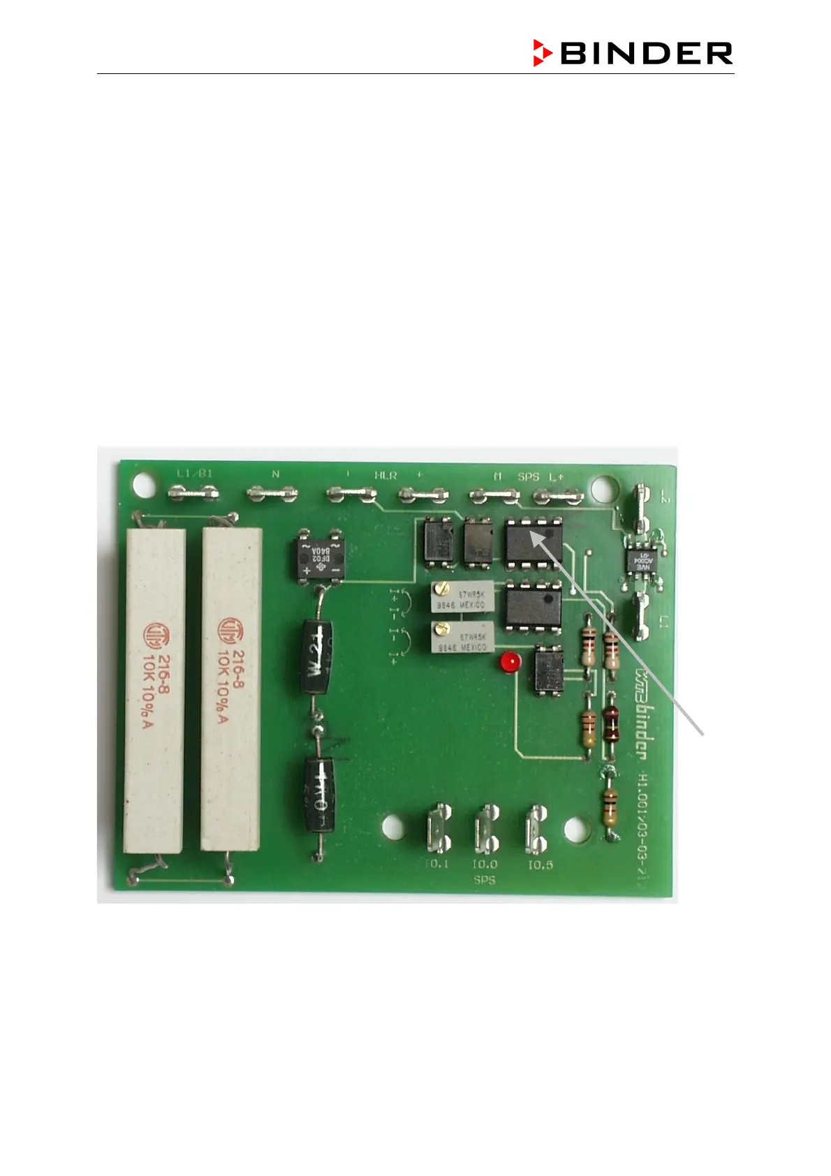 The Binder Humidity Board switches +24V on plug connector SPS I 0.0 as message for the SPS that