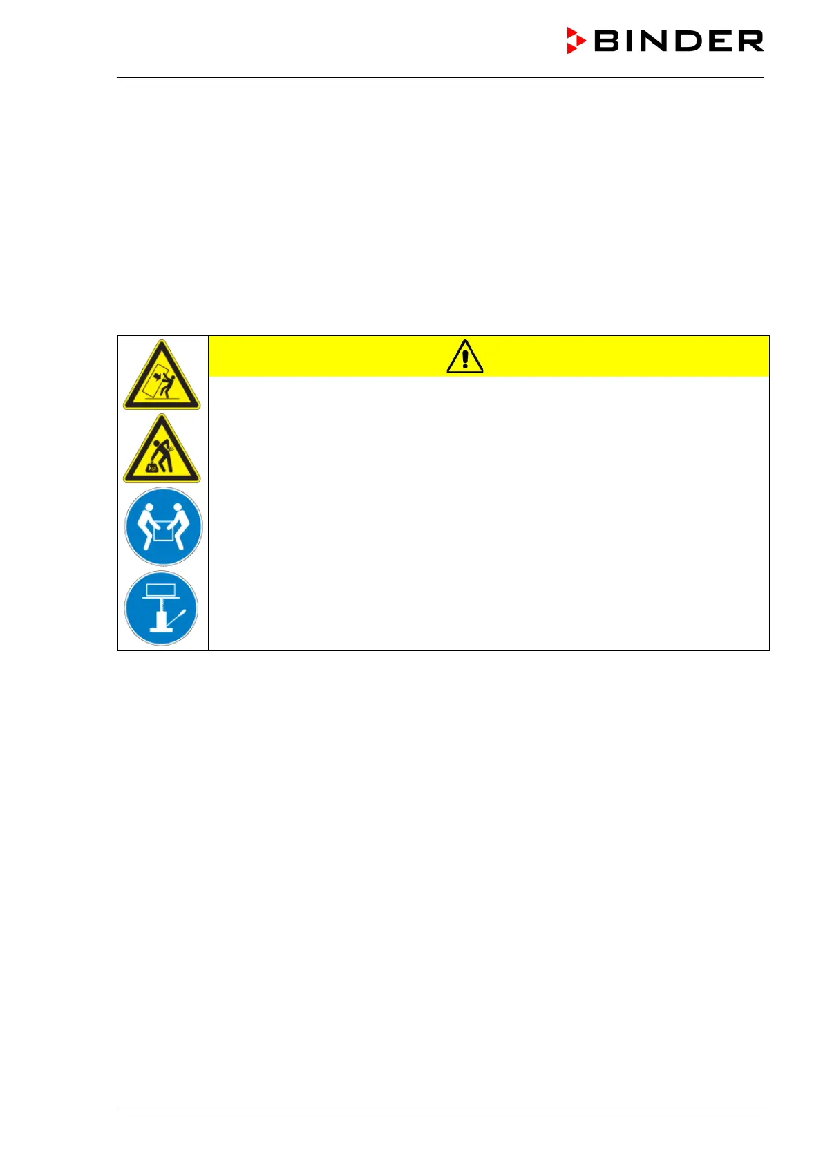 Risk of injury and damages by lifting heavy loads and by sliding or tilting of the