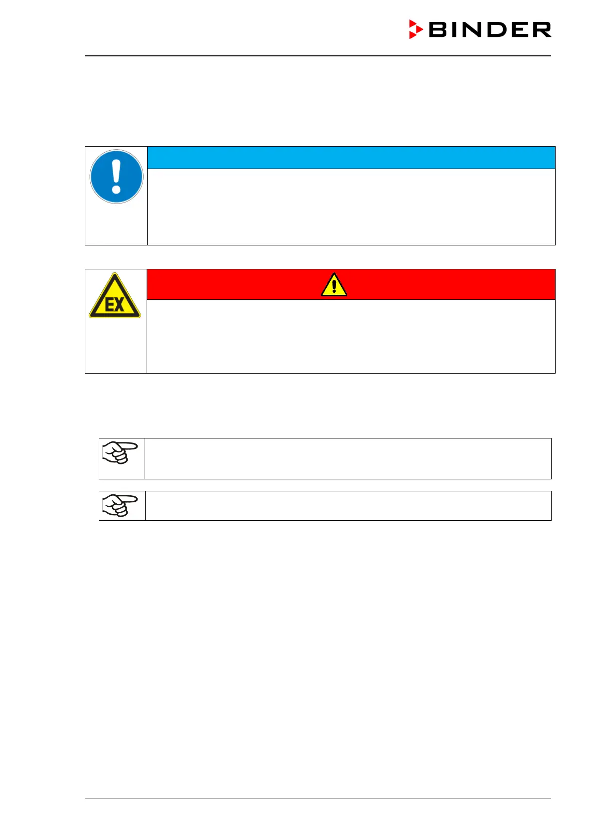 ∅ Do NOT operate the chamber in potentially explosive areas.