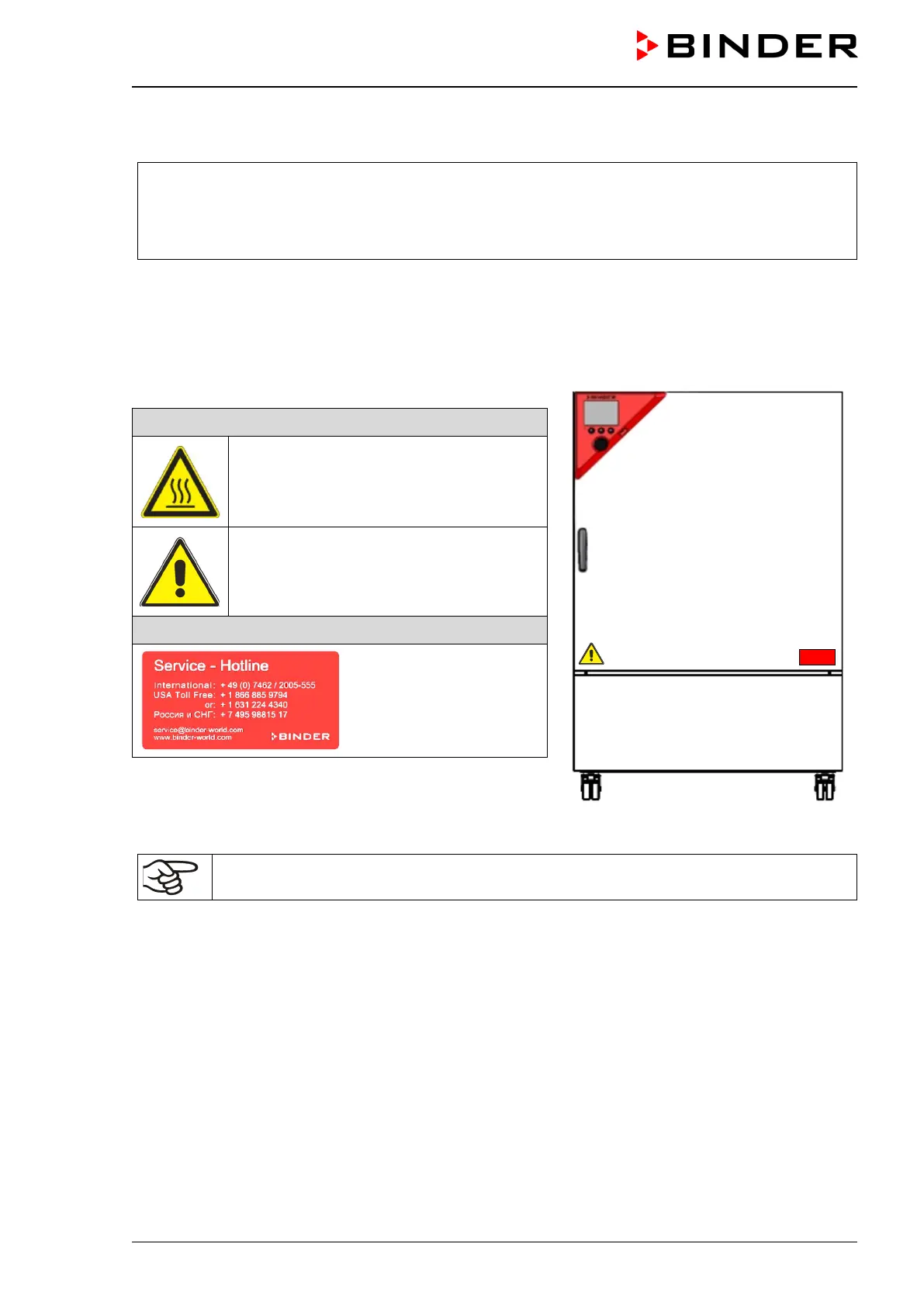 Replace safety labels that are no longer legible. Contact BINDER Service for these replacements.