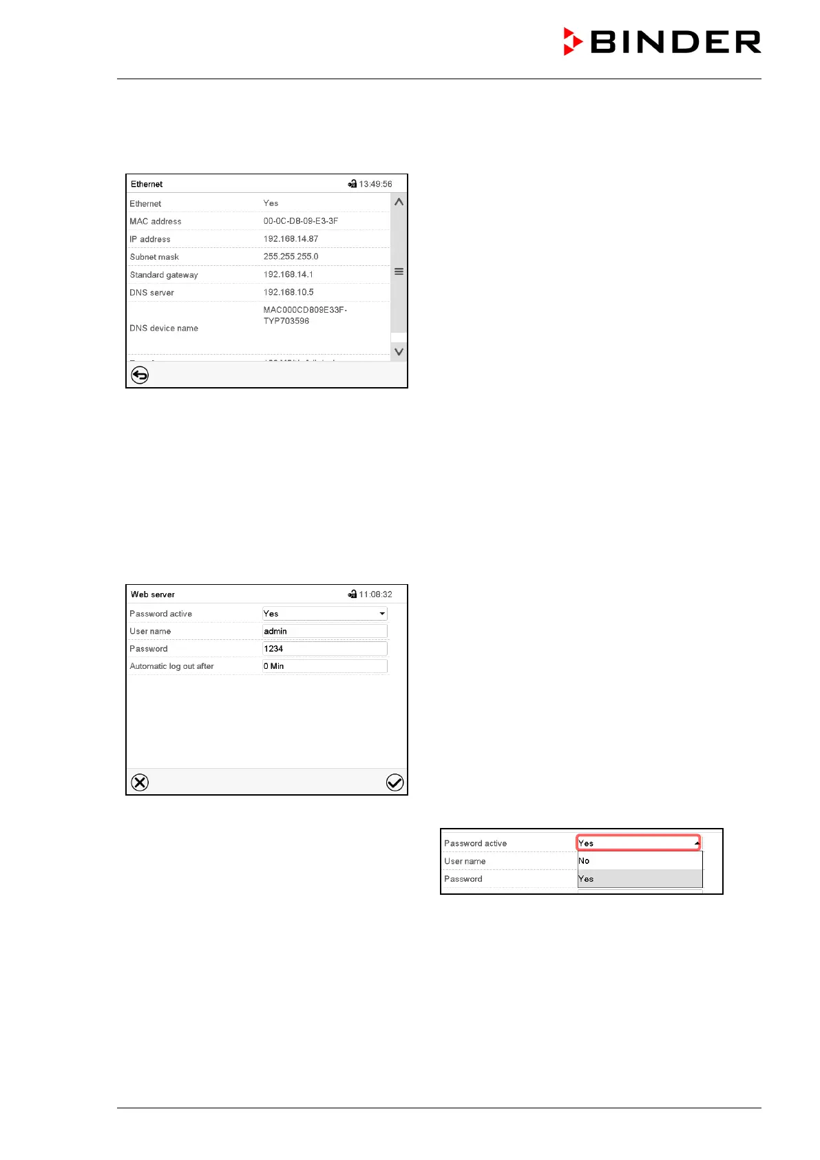 the Internet. The IP address is available via Chamber information > Ethernet. The BINDER web server