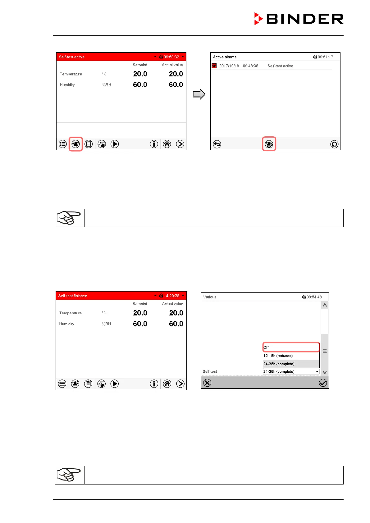 vated with the alarm message “Self-test active”.