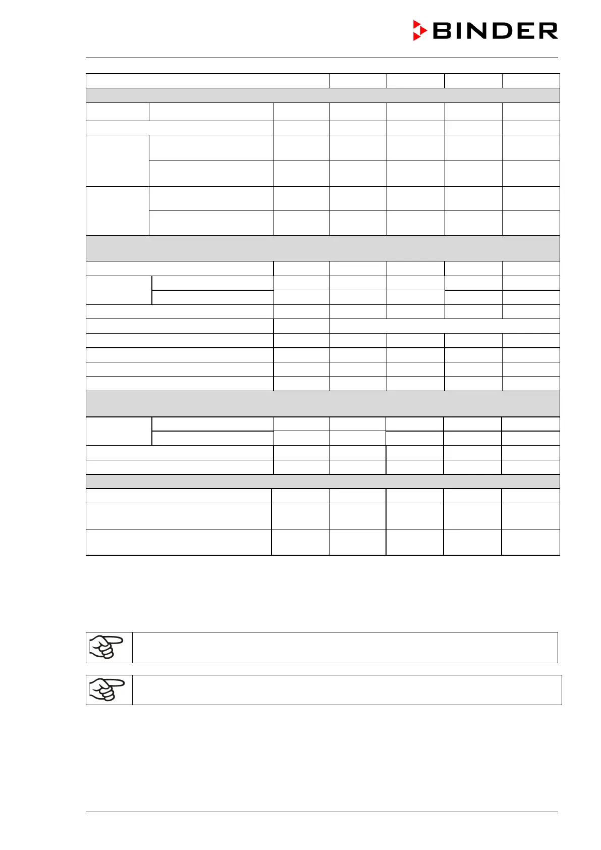 determined in accordance to BINDER Factory Standard Part 2:2015 and DIN 12880:2007.