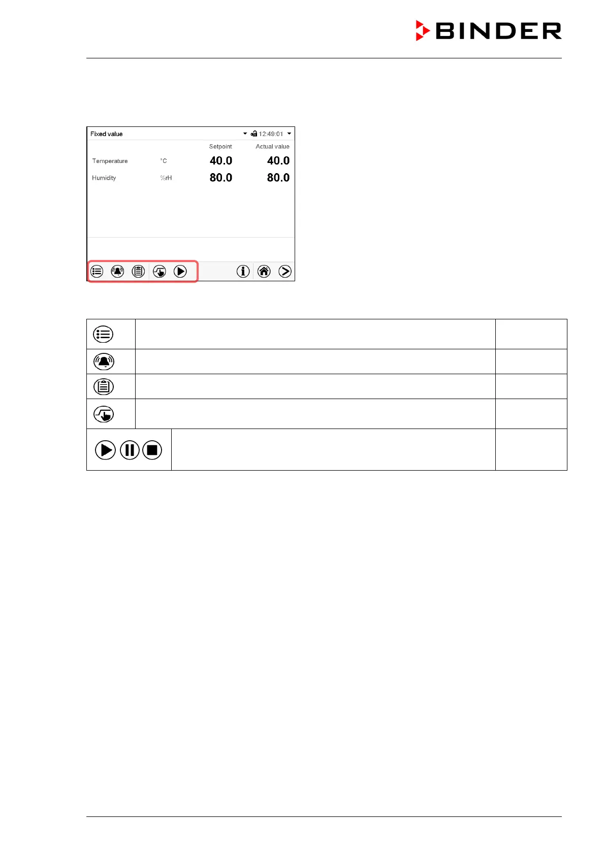 Use the navigation icons in the screen footer in Normal display to access the desired controller functions.