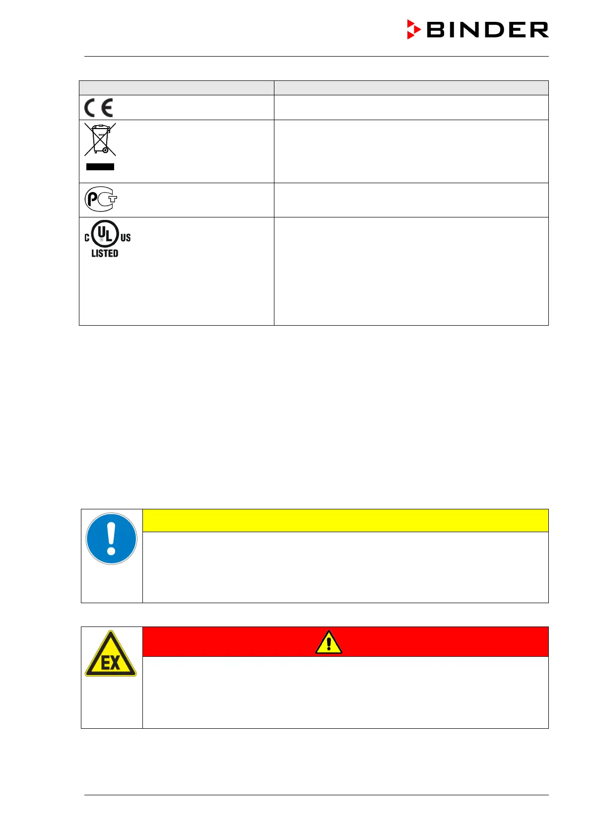 thorized by BINDER. The user is responsible for any risk caused by using unauthorized accessories.