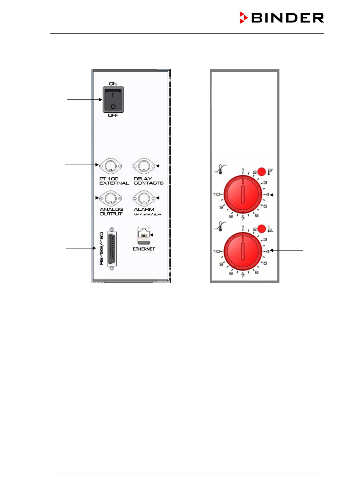 (2) DIN socket for additional Pt 100 sensor (available via BINDER INDIVIDUAL customized solutions)