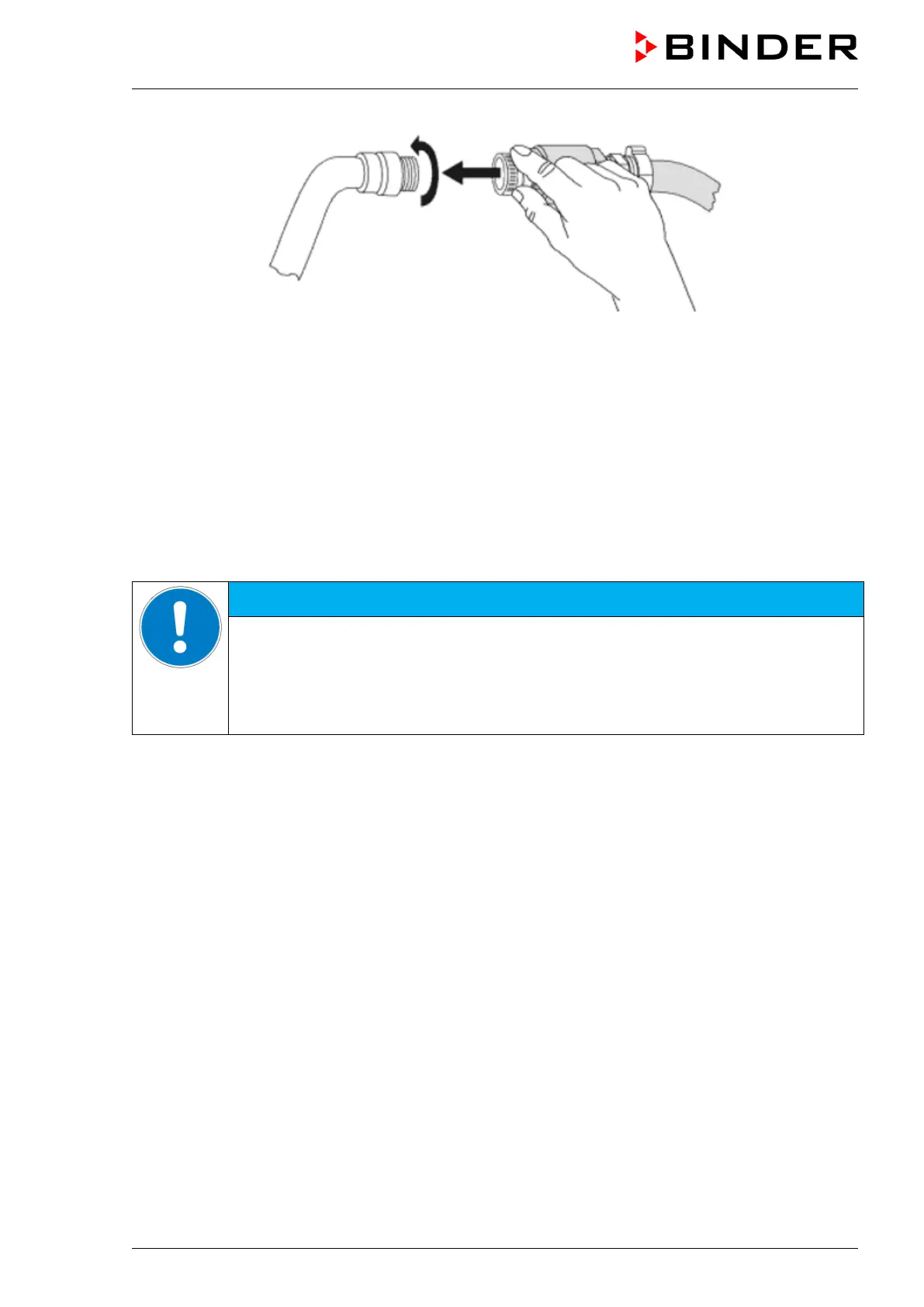 necessary. Close the water tap. Release the valve by a half left-turn of the upper knurled part. You can
