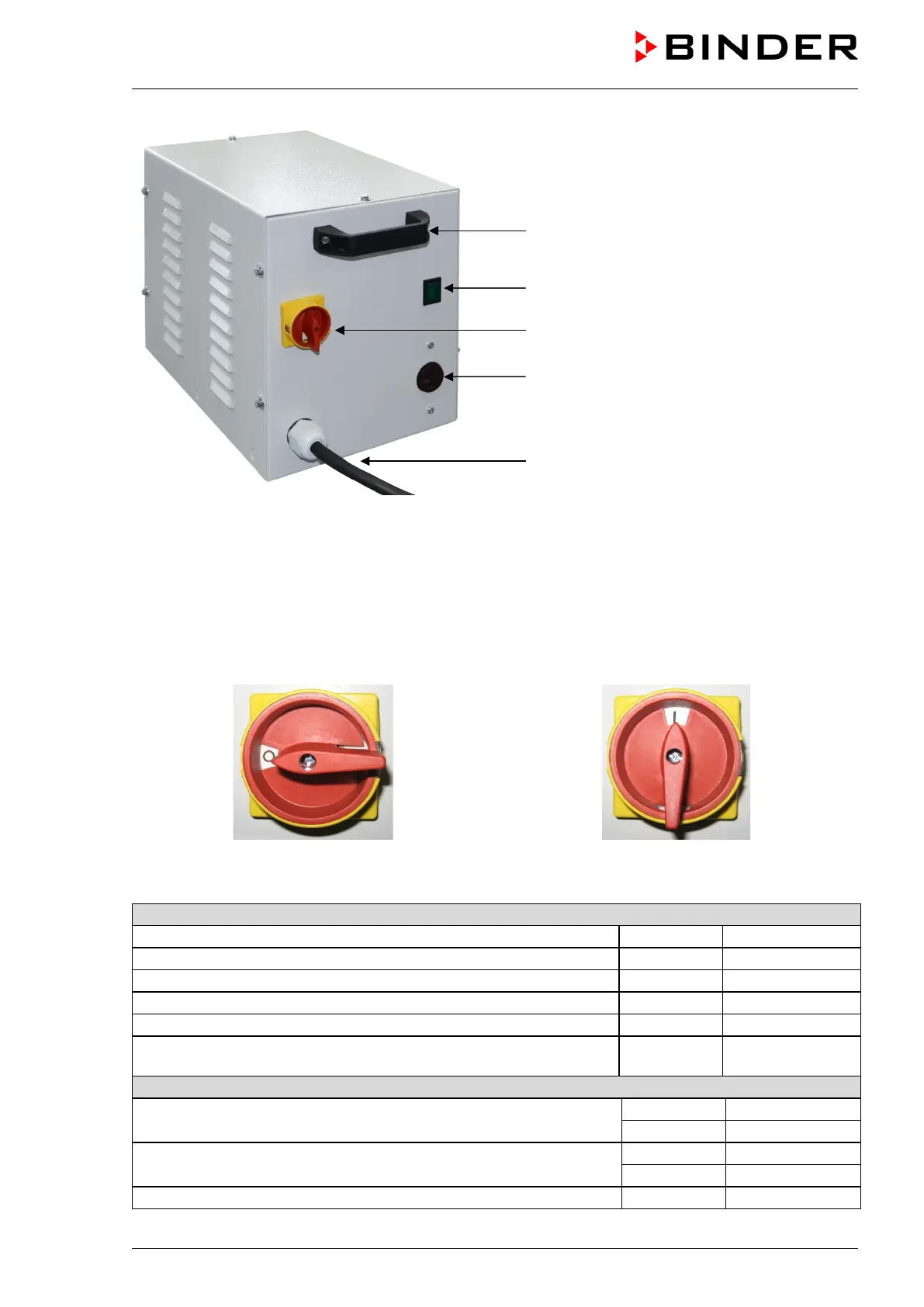 1. Connect the power cable of the constant climate chamber to the connection socket (D) of the voltage