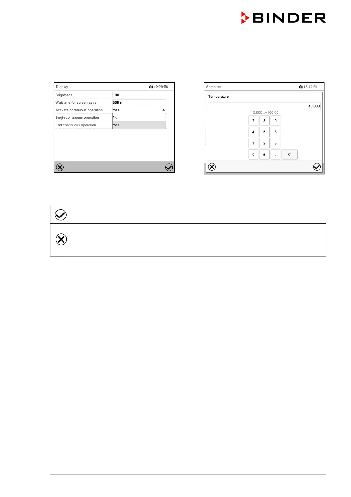 Press the Confirm icon to take over the entries and exit the menu or continue the menu se-