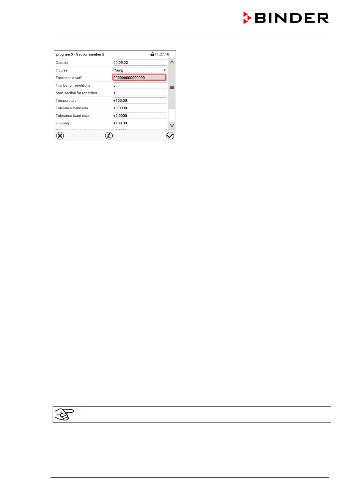 Confirm entry with Confirm icon. The controller returns to the section view.