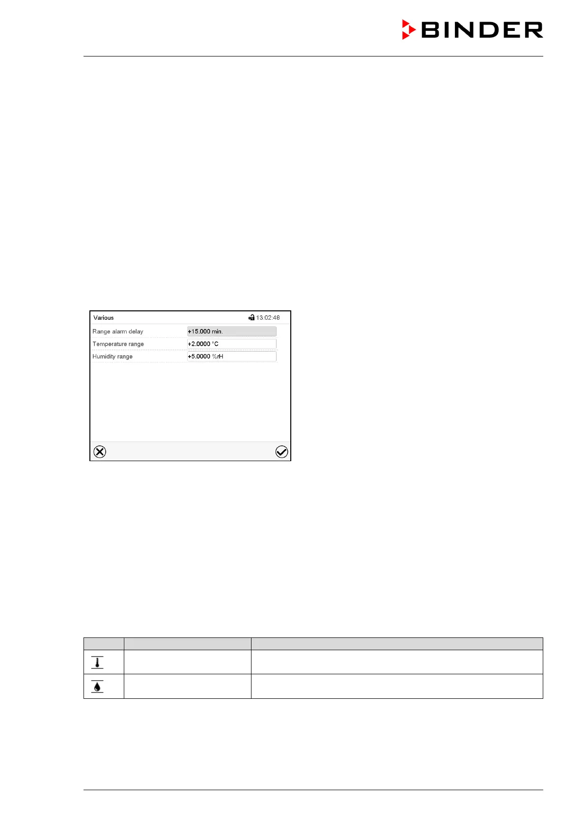 • Select the field “Humidity range” and enter the desired value for the humidity range. Setting range: 5%