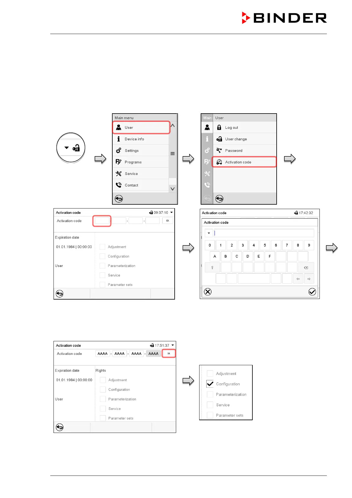 Path: Main menu > User> Activation code