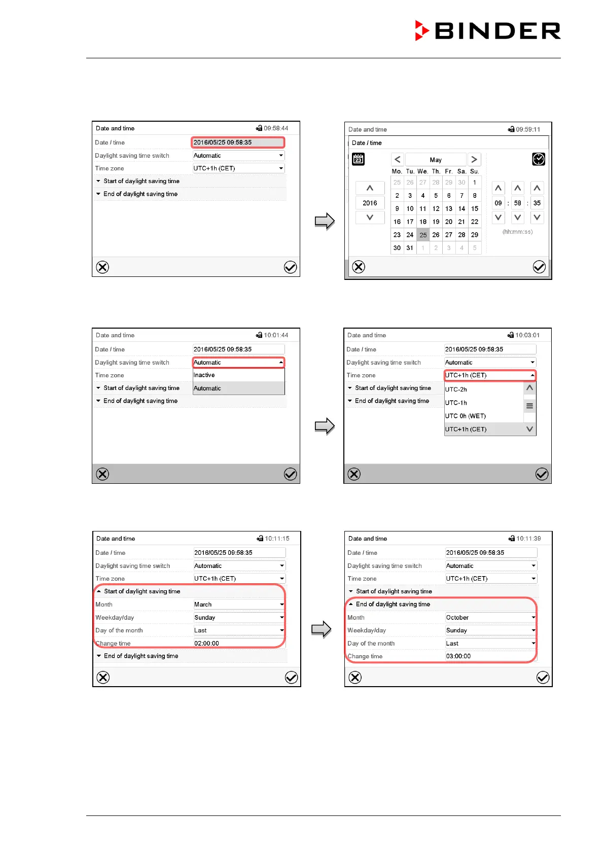 Enter date and time and press the Confirm