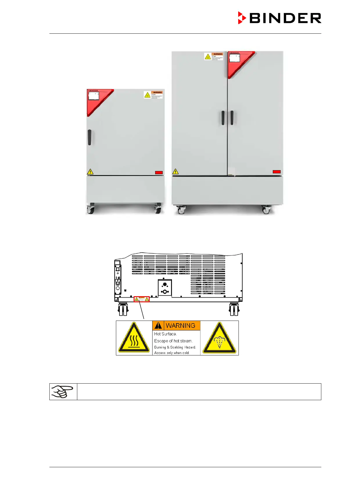 Replace safety labels that are no longer legible. Contact BINDER Service for these replacements.