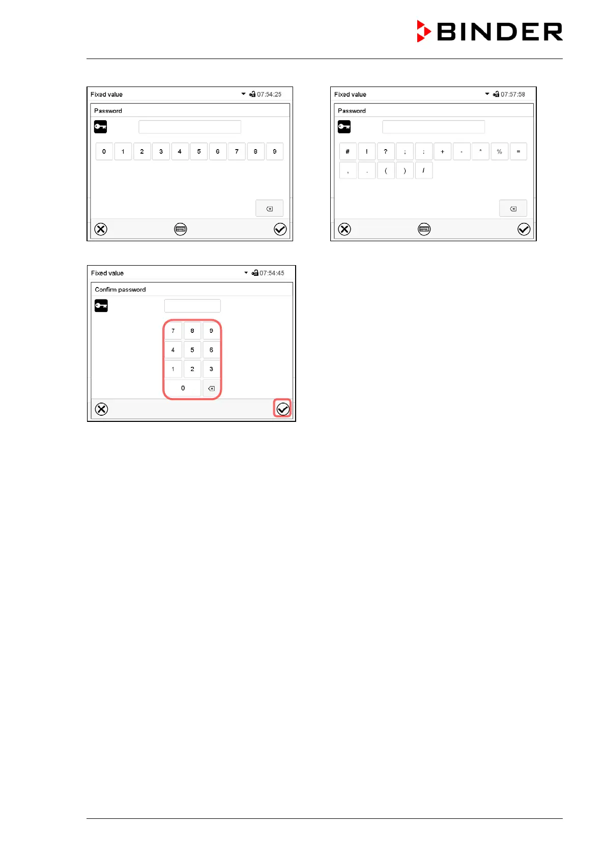 To confirm the password after the entry, repeat the