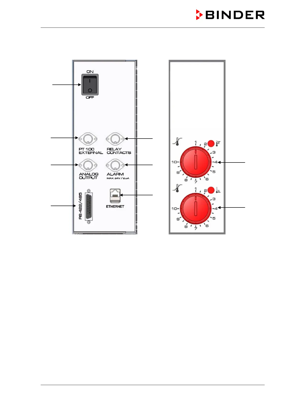 (2) DIN socket for additional Pt 100 sensor (may be available via BINDER INDIVIDUAL customized
