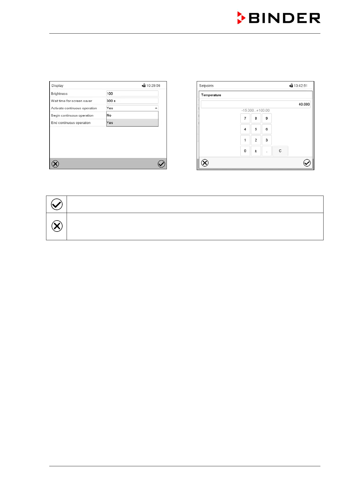 Press the Confirm icon to take over the entries and exit the menu or continue the menu se-