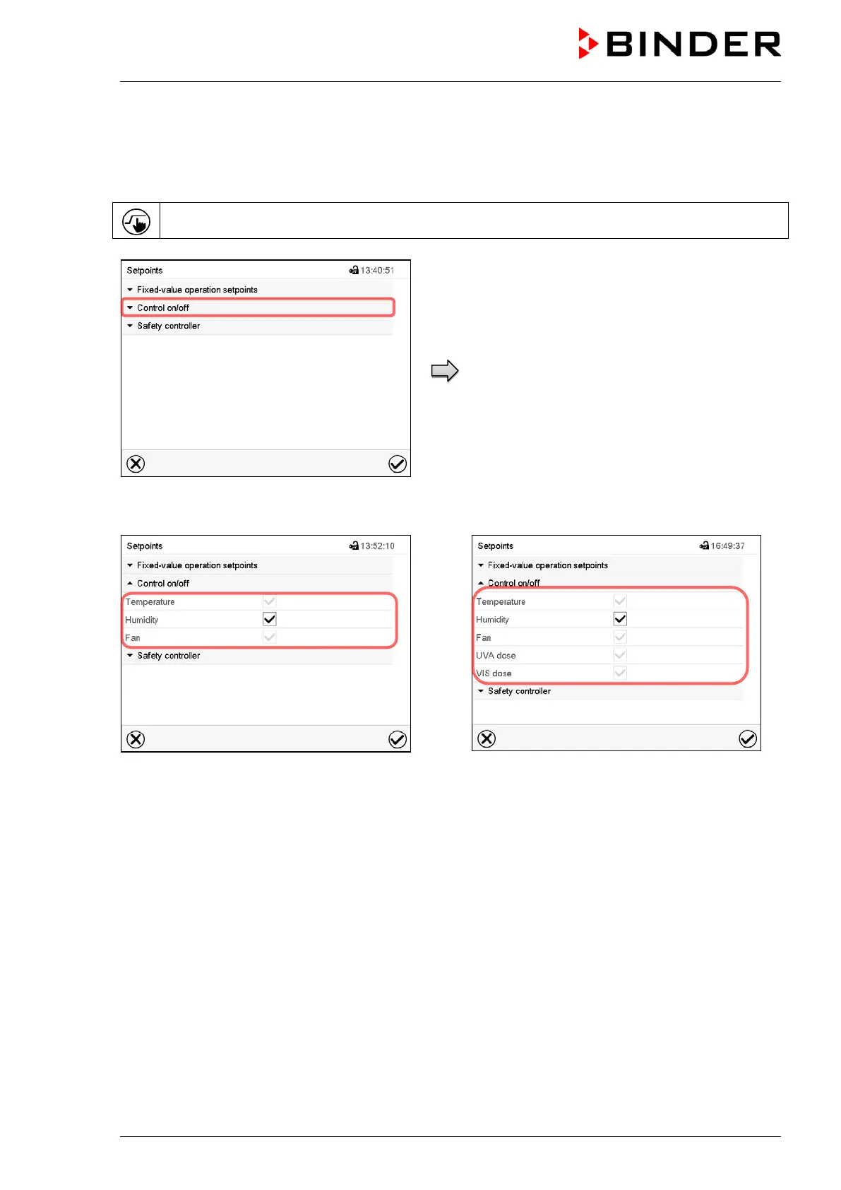 If the “Humidity “checkbox is marked, humidity control is active. Mark / unmark the checkbox to change