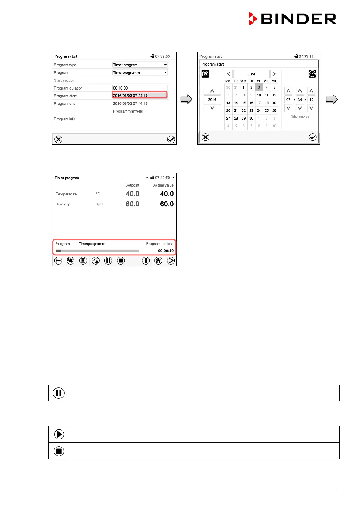 Press the Program pause icon to interrupt the program.